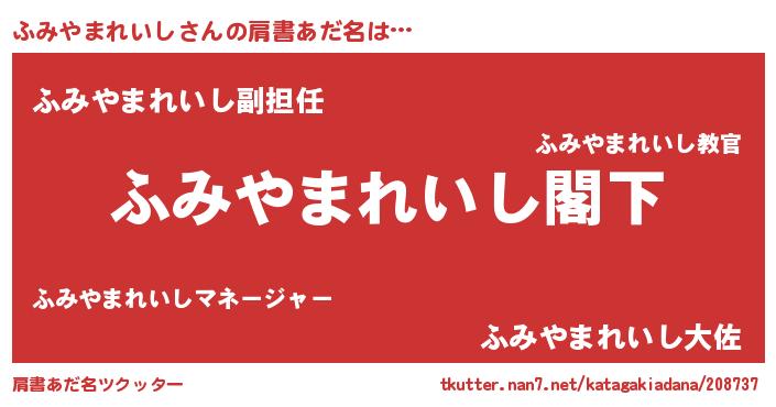 | 意味不明あだ名 | 『自称ふみやまれいし』 |