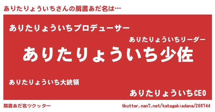 | 男性向けラノベタイトル風あだ名 | 『アリタリョウイチスレイヤー』 |