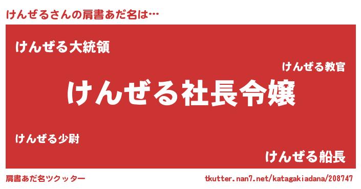 | 男性向けラノベタイトル風あだ名 | 『けんぜるの憂鬱』『魔弾の王とけんぜる』 |