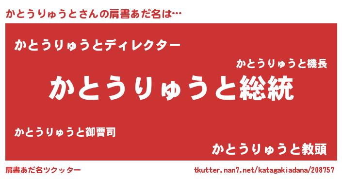 | 意味不明あだ名 | 『自称かとうりゅうと』 |