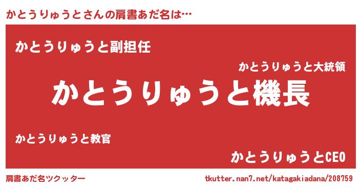 | ヒーロー風カッコイイあだ名 | 『ネオカトウリュウト』『仮面カトダー』 |