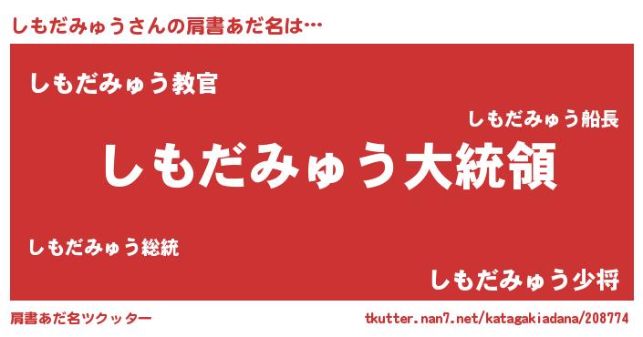 | 欧米人風あだ名 | 『しもだみゅうクリステル』 |