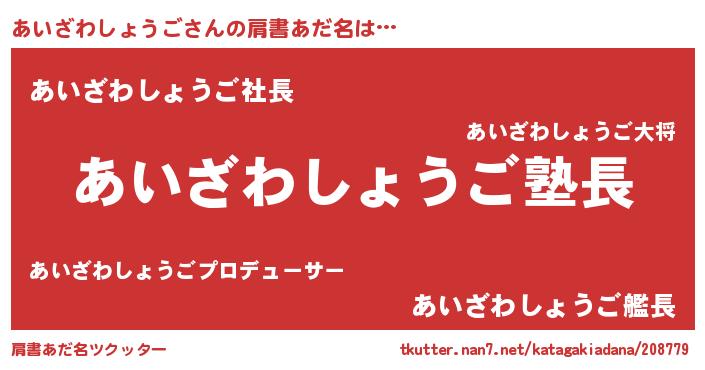 | 男性向けラノベタイトル風あだ名 | 『あいざわしょうごの嫁は女の子じゃないと思った?』 |