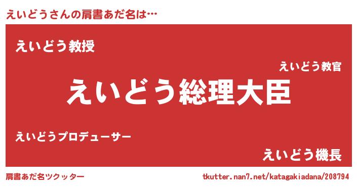 | 意味不明あだ名 | 『えいどうフォーエバー』『自称えいどう』 |