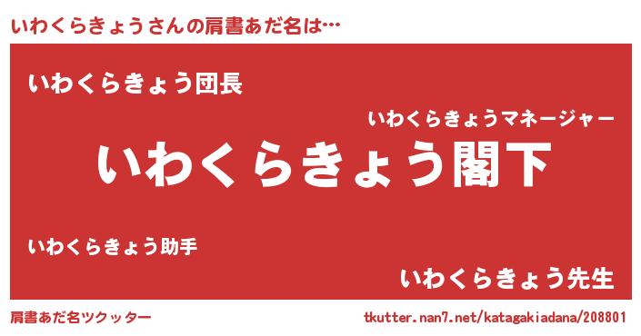 | ヘコむあだ名 | 『いわお』『いわくらきょう(笑)』 |