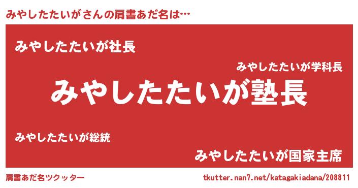 | ポケモン風あだ名 | 『ヒミヤシタタイガ』『ミヤチュウ』 |