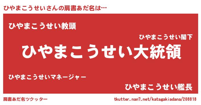 | 意味不明あだ名 | 『ひやまこうせいフォーエバー』 |