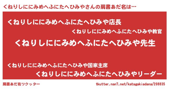 | ヘコむあだ名 | 『くねりしににみめへふにたへひみや(笑)』 |