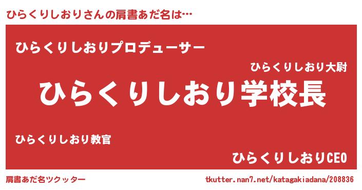 | 料理風あだ名 | 『ひらくりしおりのトマト煮』 |