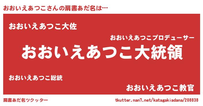 | 意味不明あだ名 | 『おおいえあつこフォーエバー』 |