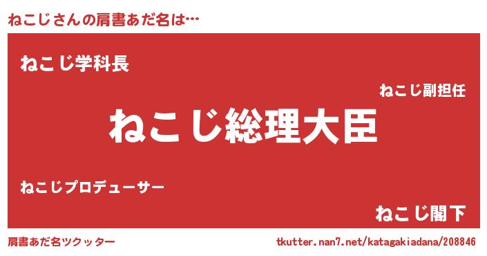 | ポケモン風あだ名 | 『ネコジダネ』『ネックウザ』 |