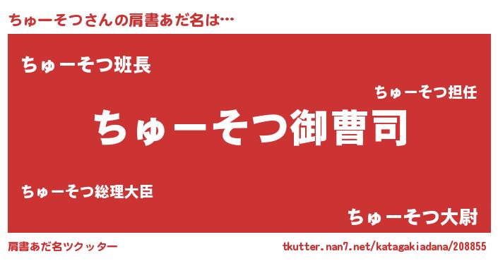 | ヒーロー風カッコイイあだ名 | 『スーパーチューソツ』『黄金騎士チュ』 |