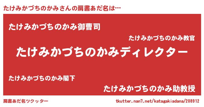 | ヒーロー風カッコイイあだ名 | 『スーパータケミカヅチノカミ』 |