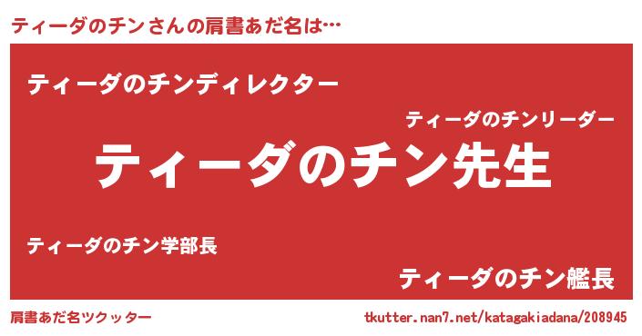 | ヒーロー風カッコイイあだ名 | 『ネオティーダノチン』『炎刃騎士ティ』 |