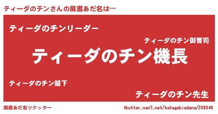 | 男性向けラノベタイトル風あだ名 | 『緋弾のティーダノチン』 |