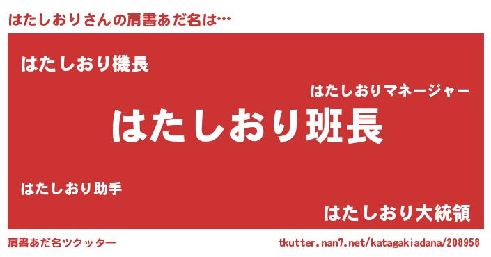 | ヒーロー風カッコイイあだ名 | 『魔戒騎士ハタ』『友情の使者はたしおり』 |