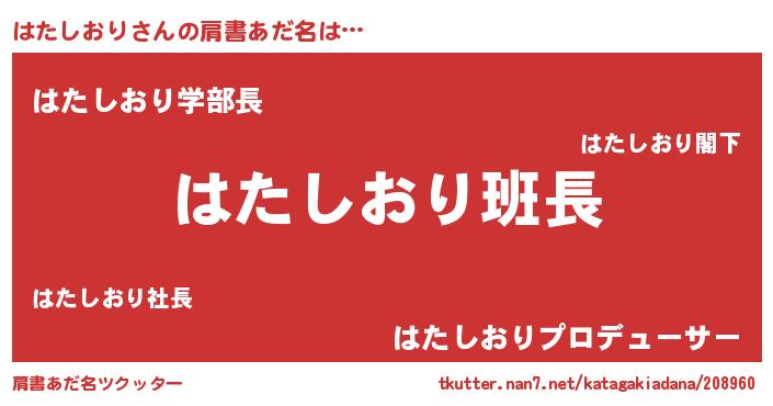 | 胡散臭い通販商品みたいなあだ名 | 『信頼と実績のサプリメント…その名も「はたしおり」』 |