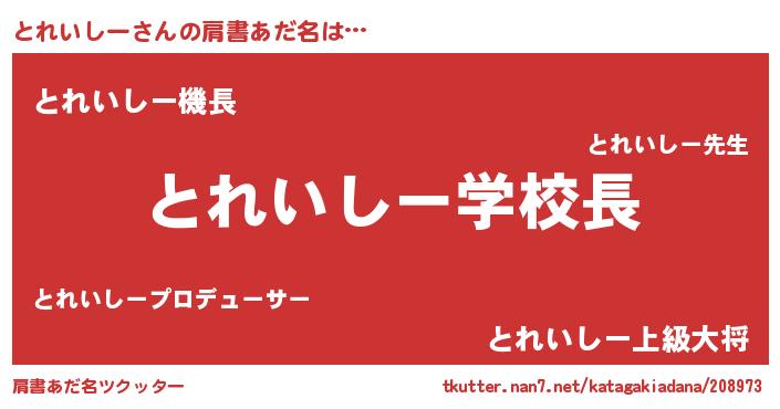 | ヘコむあだ名 | 『とれいしー(苦笑)』『とれぷりん』 |