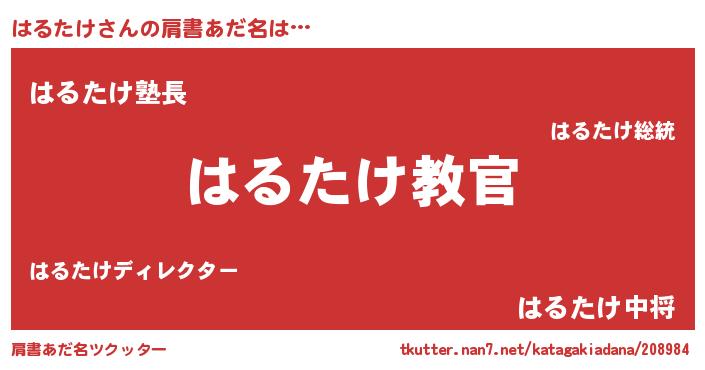 | ポケモン風あだ名 | 『ハールイ』『ヒハルタケ』 |