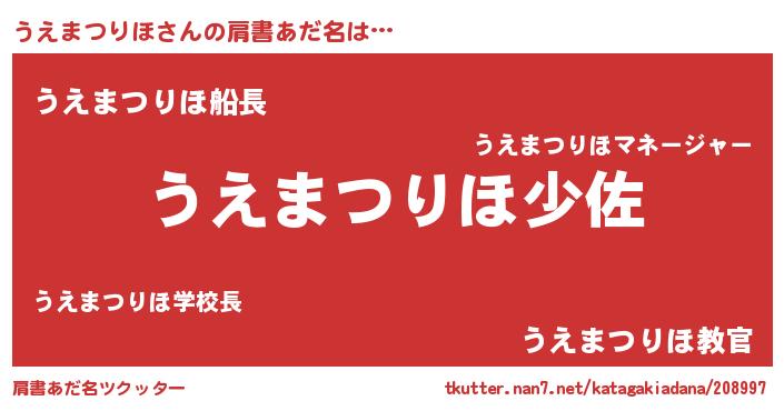 | 男性向けラノベタイトル風あだ名 | 『ウエマツリホスレイヤー』 |