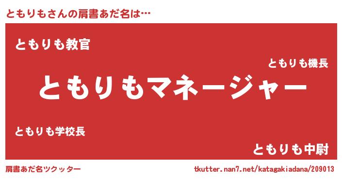 | 意味不明あだ名 | 『住所不定無職ともりも(7歳)』 |