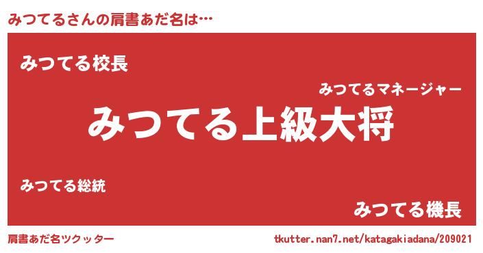 | 胡散臭い通販商品みたいなあだ名 | 『来世でも幸せになれる水素水…その名も「みつてる」』 |