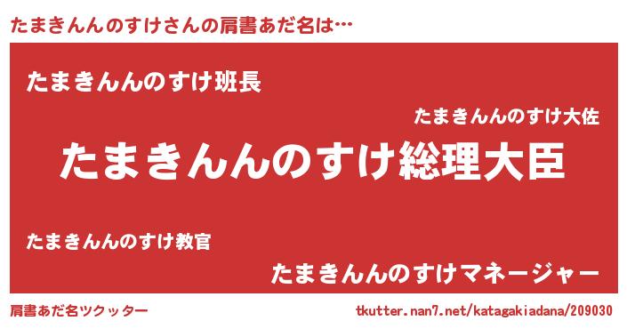 | 女子向けラノベタイトル風あだ名 | 『たまきんんのすけ伯爵の花嫁』 |