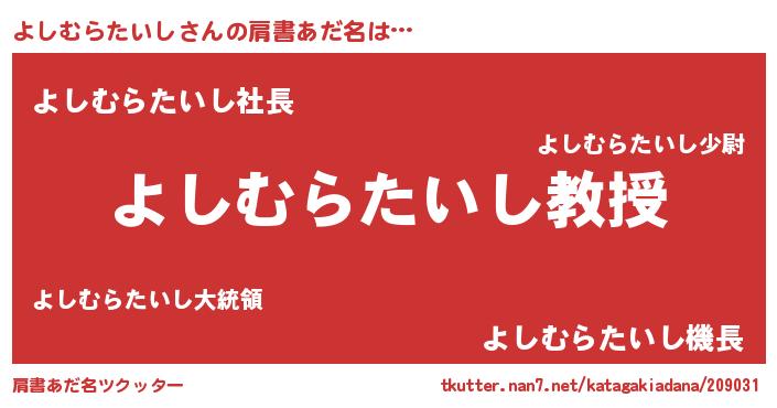 | 伝説のあだ名 | 『救世主となる技術者よしむらたいし』 |