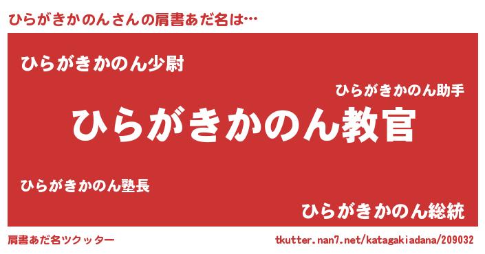| 男性向けラノベタイトル風あだ名 | 『この素晴らしい世界にひらがきかのんを!』 |