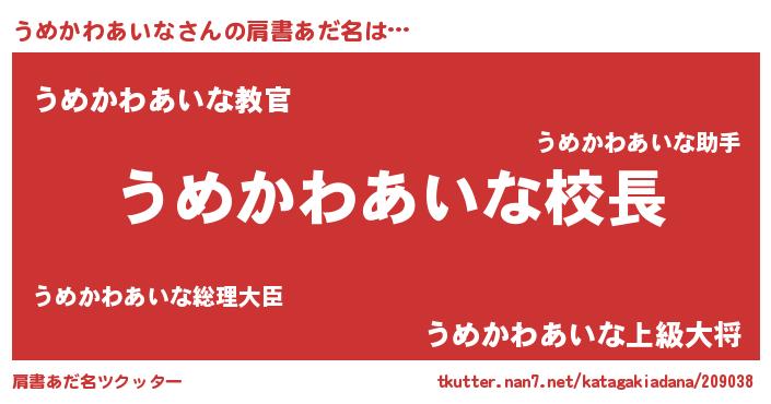| ヒーロー風カッコイイあだ名 | 『ネオウメカワアイナ』『仮面ウメダー』 |