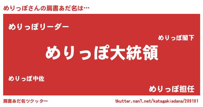 | ヒーロー風カッコイイあだ名 | 『ウルトラめりっぽマン』『魔戒騎士メリ』 |