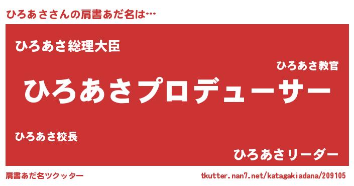 | 男性向けラノベタイトル風あだ名 | 『はたらくひろあささま!』 |