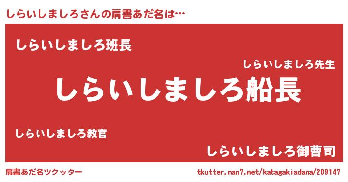 | 意味不明あだ名 | 『とにかく怪しいしらいしましろ』 |