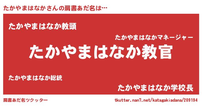 | ヒーロー風カッコイイあだ名 | 『仮面タカダー』『ネオタカヤマハナカ』 |