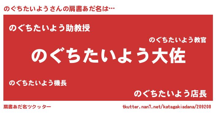 | 男性向けラノベタイトル風あだ名 | 『のぐちたいよう~年齢イコール彼女いない歴の魔法使い~』 |