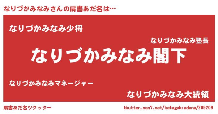 | 意味不明あだ名 | 『自称なりづかみなみ』 |