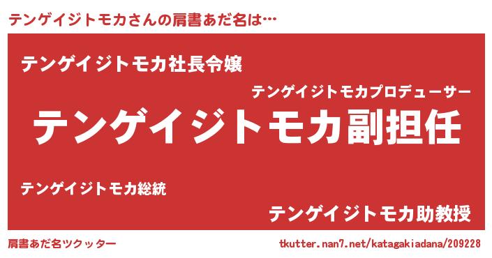 | ヘコむあだ名 | 『テンゲイジトモカ(遠い目)』『テンもー』 |