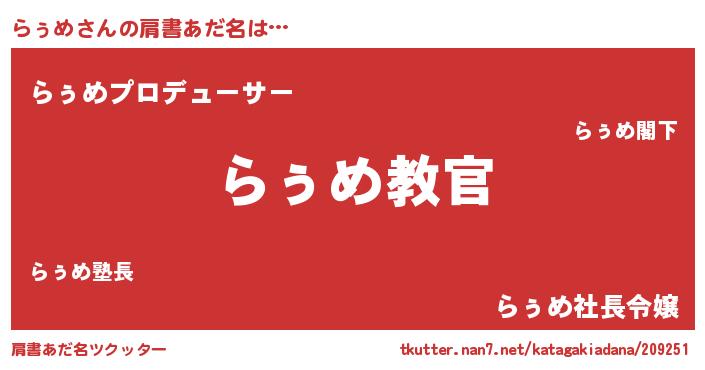 | 男性向けラノベタイトル風あだ名 | 『この素晴らしい世界にらぅめを!』 |
