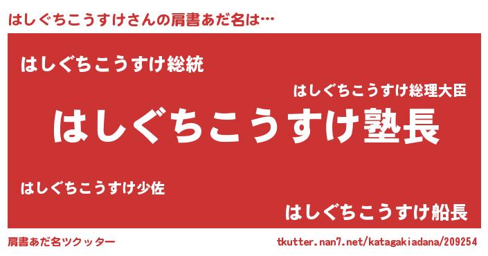 | 意味不明あだ名 | 『とにかく怪しいはしぐちこうすけ』 |