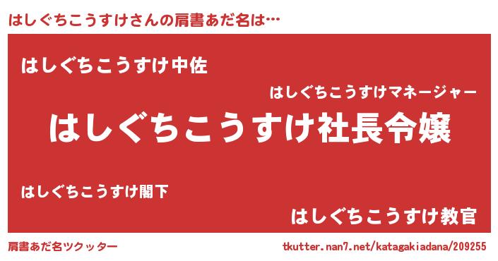 | 男性向けラノベタイトル風あだ名 | 『はしぐちこうすけの憂鬱』 |