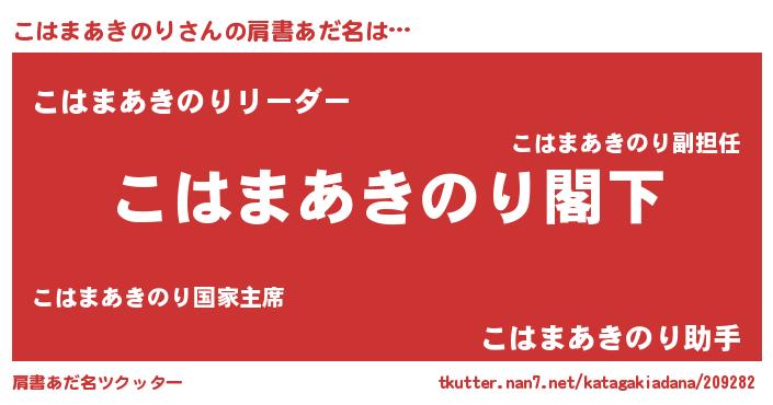| 男性向けラノベタイトル風あだ名 | 『Re:こはまあきのりから始める異世界生活』 |