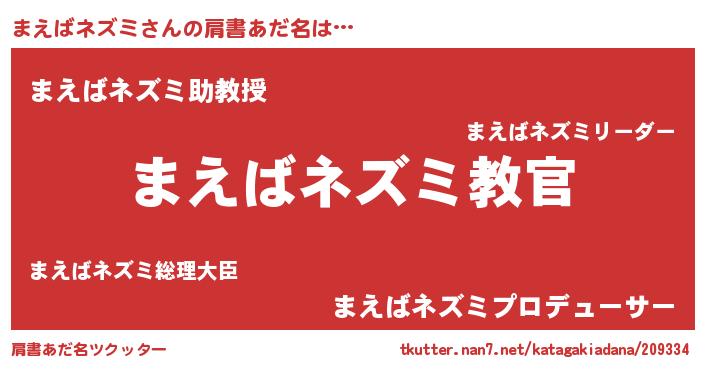 | 意味不明あだ名 | 『住所不定無職まえばネズミ(11歳)』 |