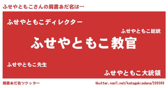 | ヒーロー風カッコイイあだ名 | 『仮面フセダー』『ネオフセヤトモコ』 |