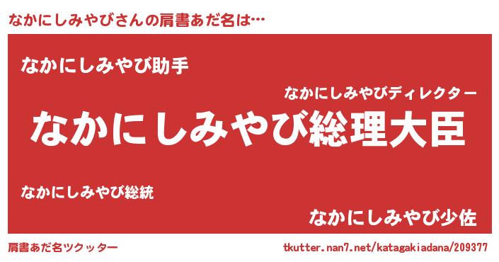 | 意味不明あだ名 | 『なかにしみやびフォーエバー』 |
