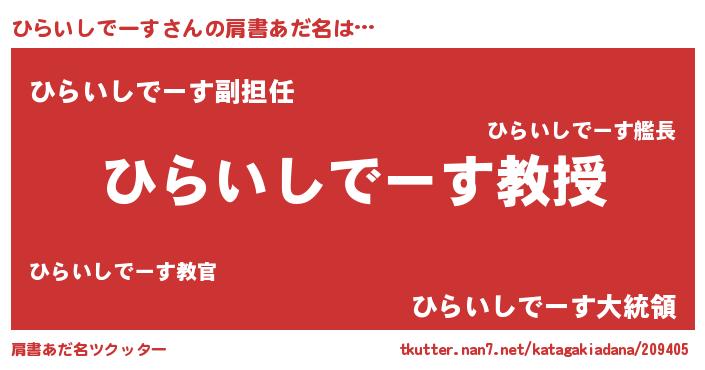 | 男性向けラノベタイトル風あだ名 | 『ノーゲーム・ノーヒライシデース』 |