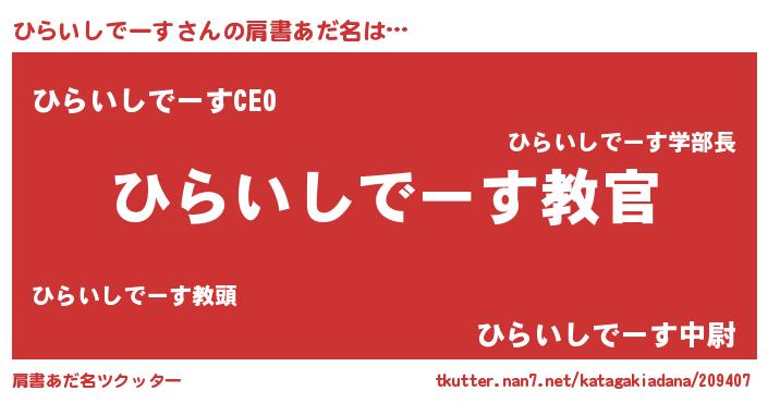 | ヒーロー風カッコイイあだ名 | 『仮面ヒラダー』『ネオヒライシデース』 |