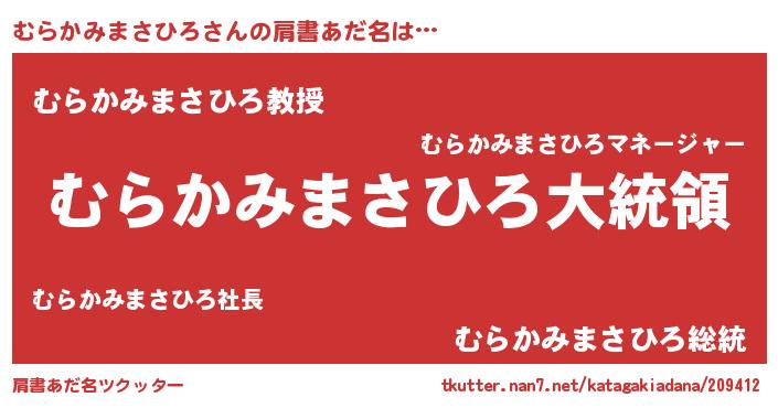 | 女子向けラノベタイトル風あだ名 | 『むらかみまさひろの婚約者』 |