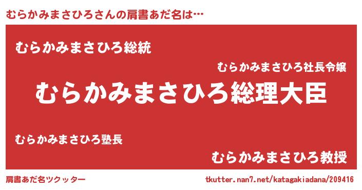 | 女子向けラノベタイトル風あだ名 | 『むらかみまさひろの婚約者』 |
