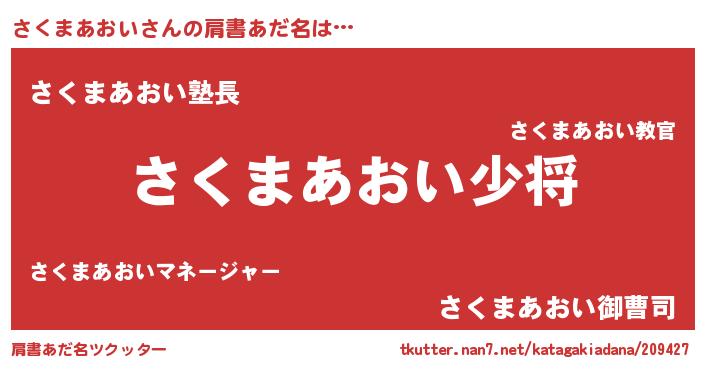 | 男性向けラノベタイトル風あだ名 | 『転生したらさくまあおいだった件』 |