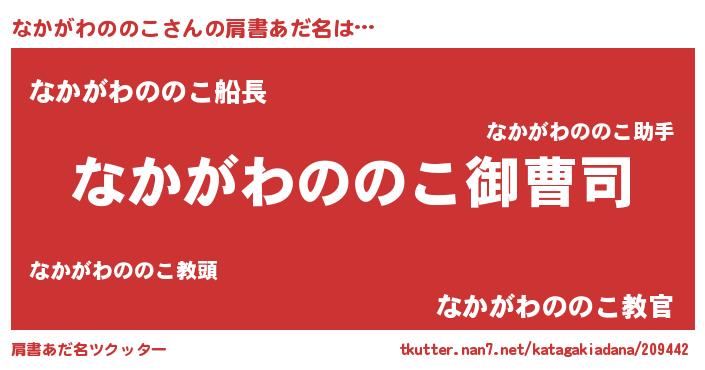 | 男性向けラノベタイトル風あだ名 | 『ナカガワノノコアートオンライン』 |